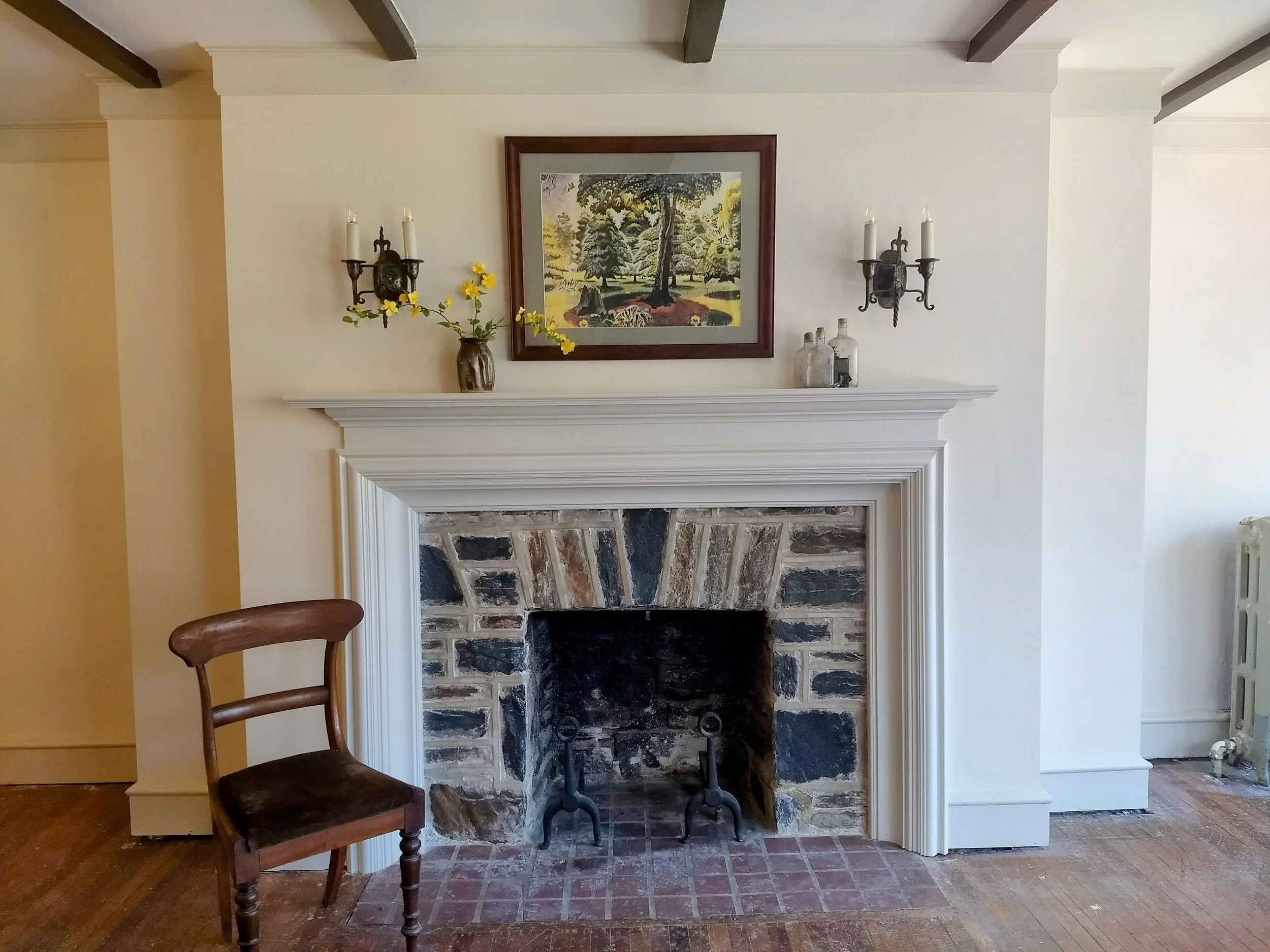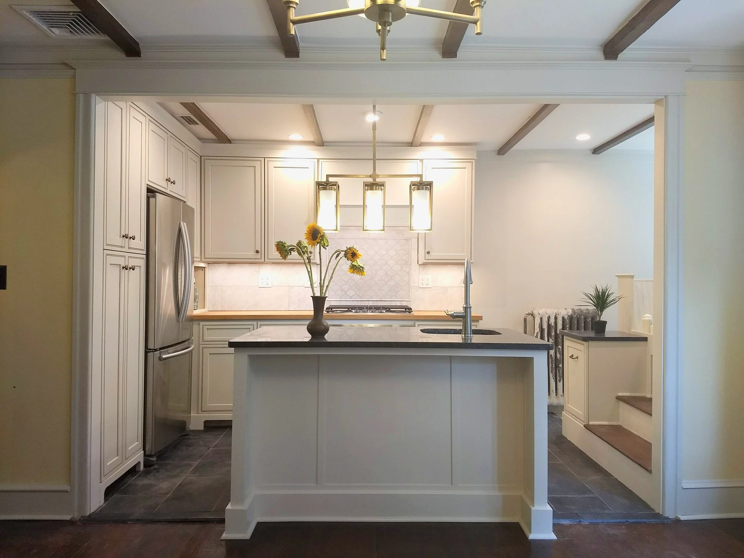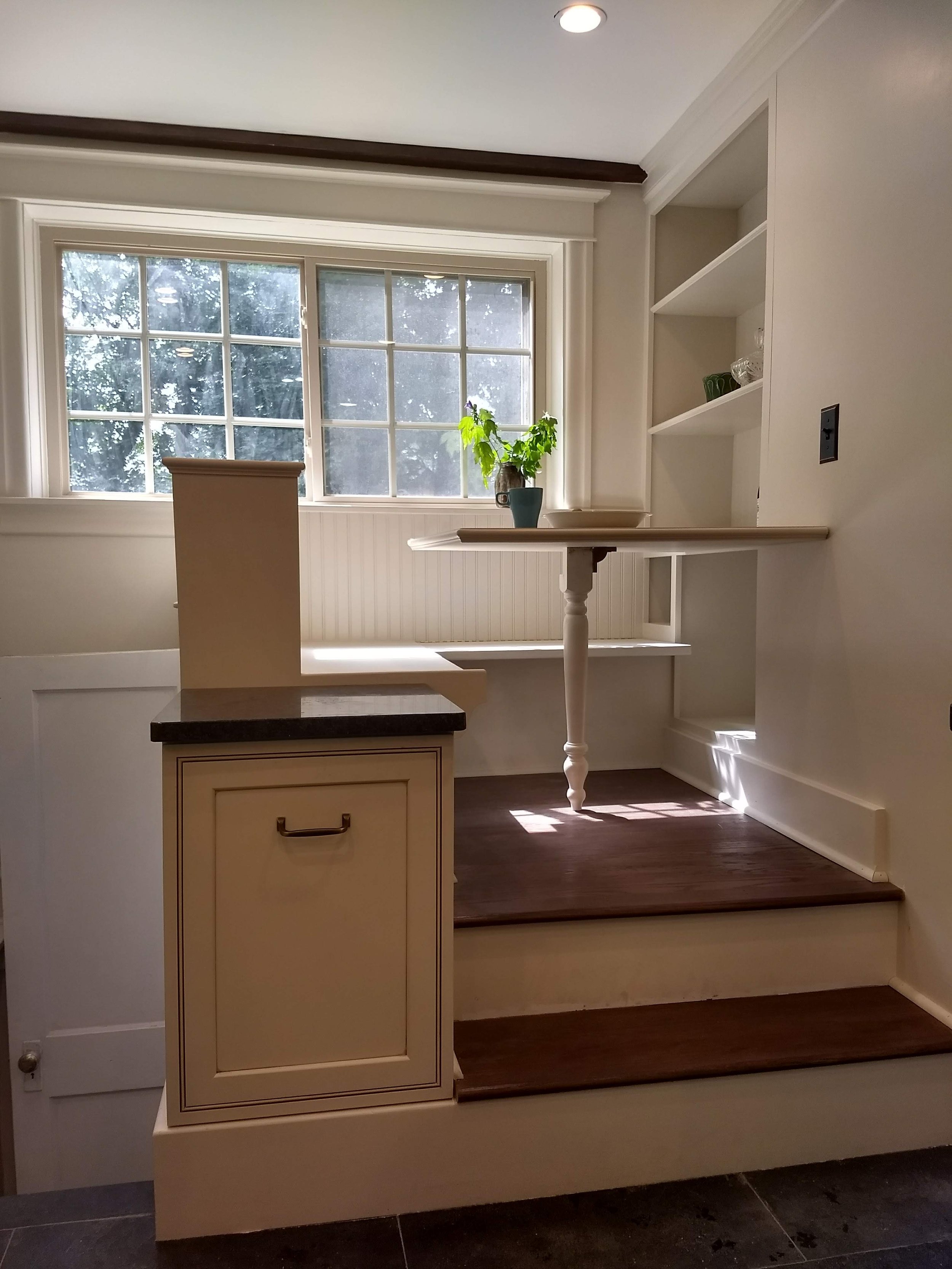 The trim of the new cased opening between the kitchen and family room matches the historic woodwork of the house.