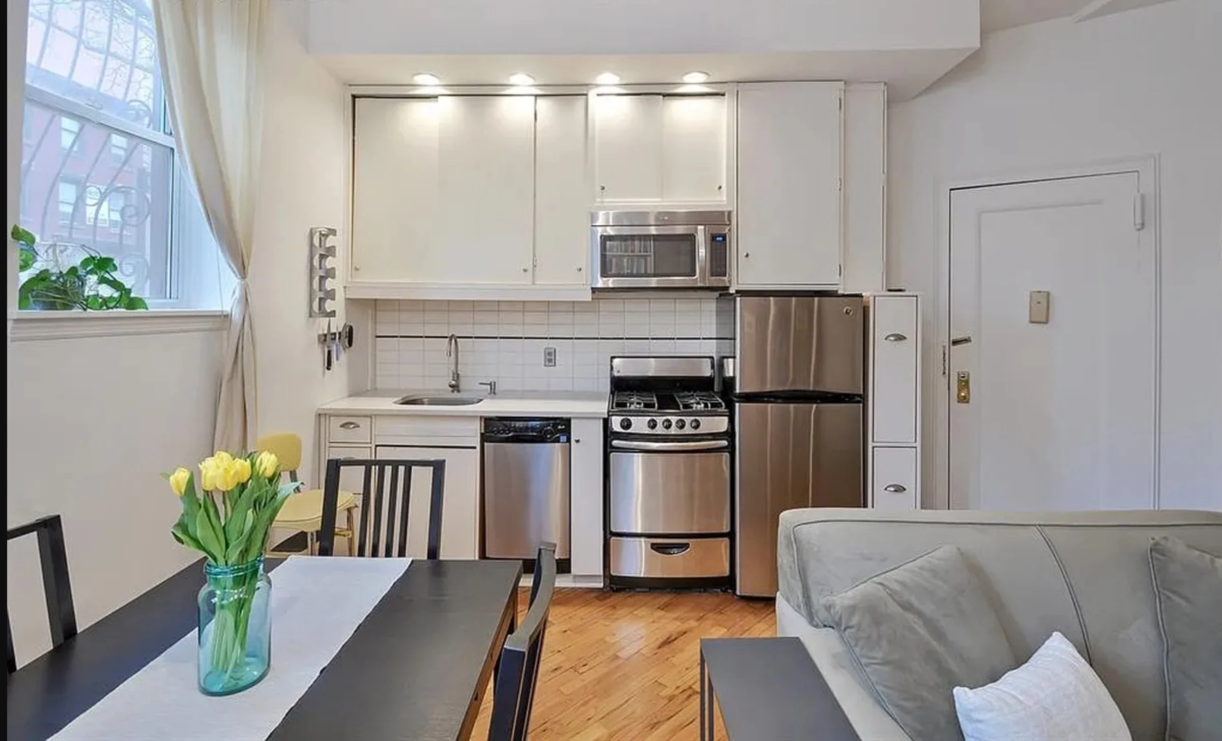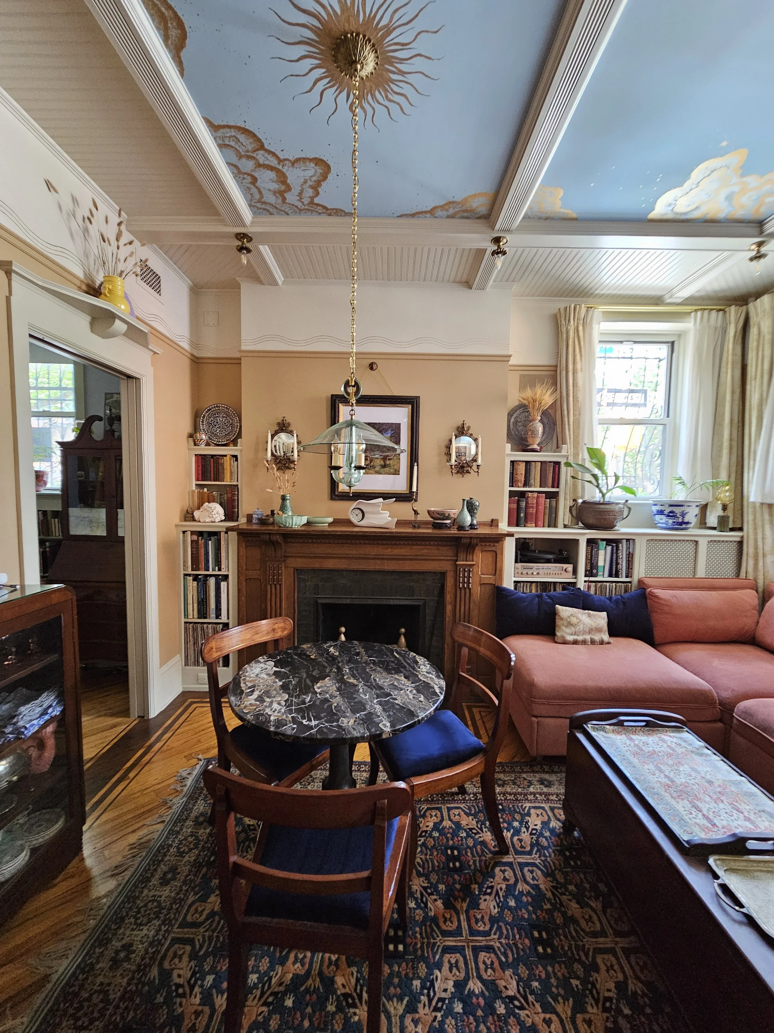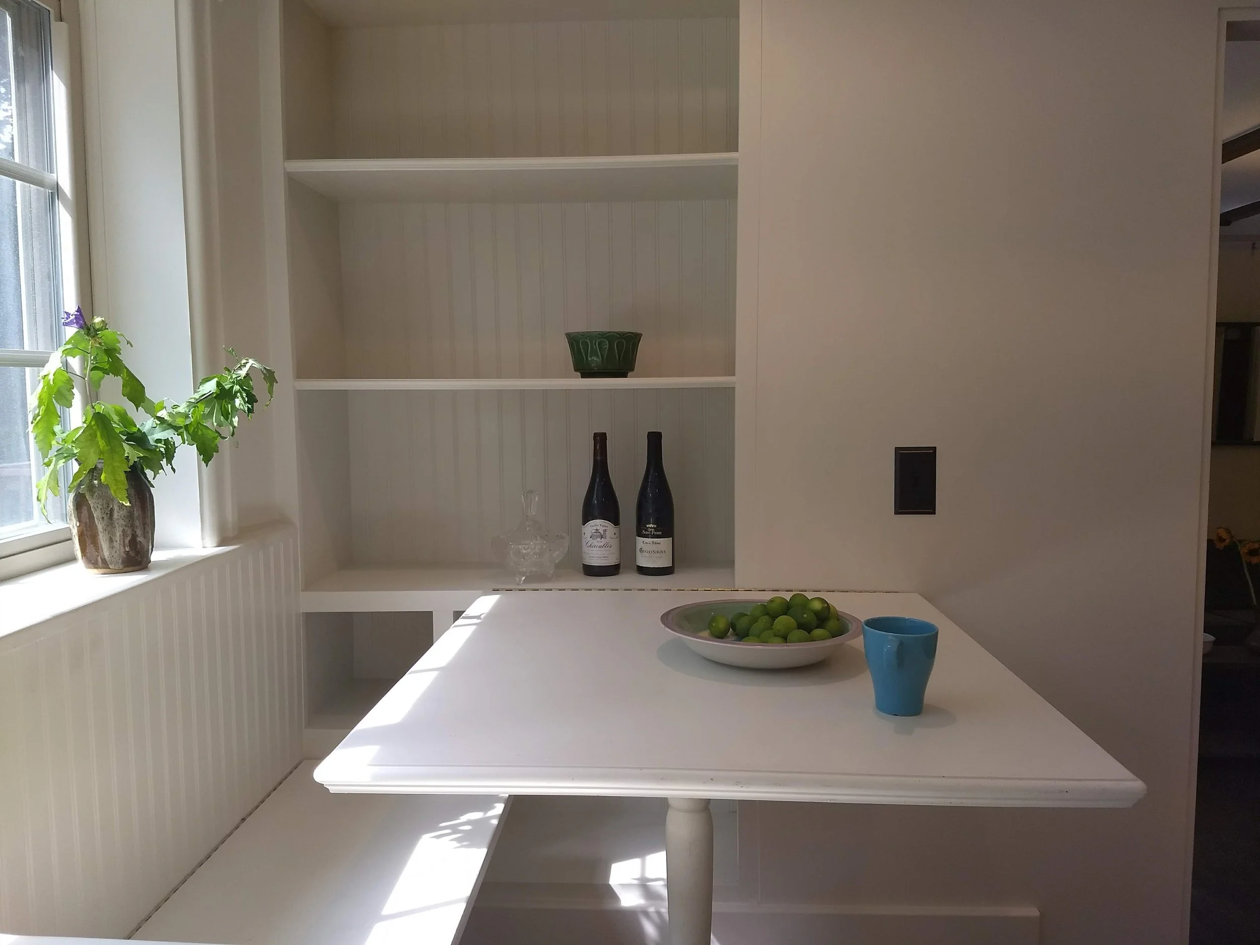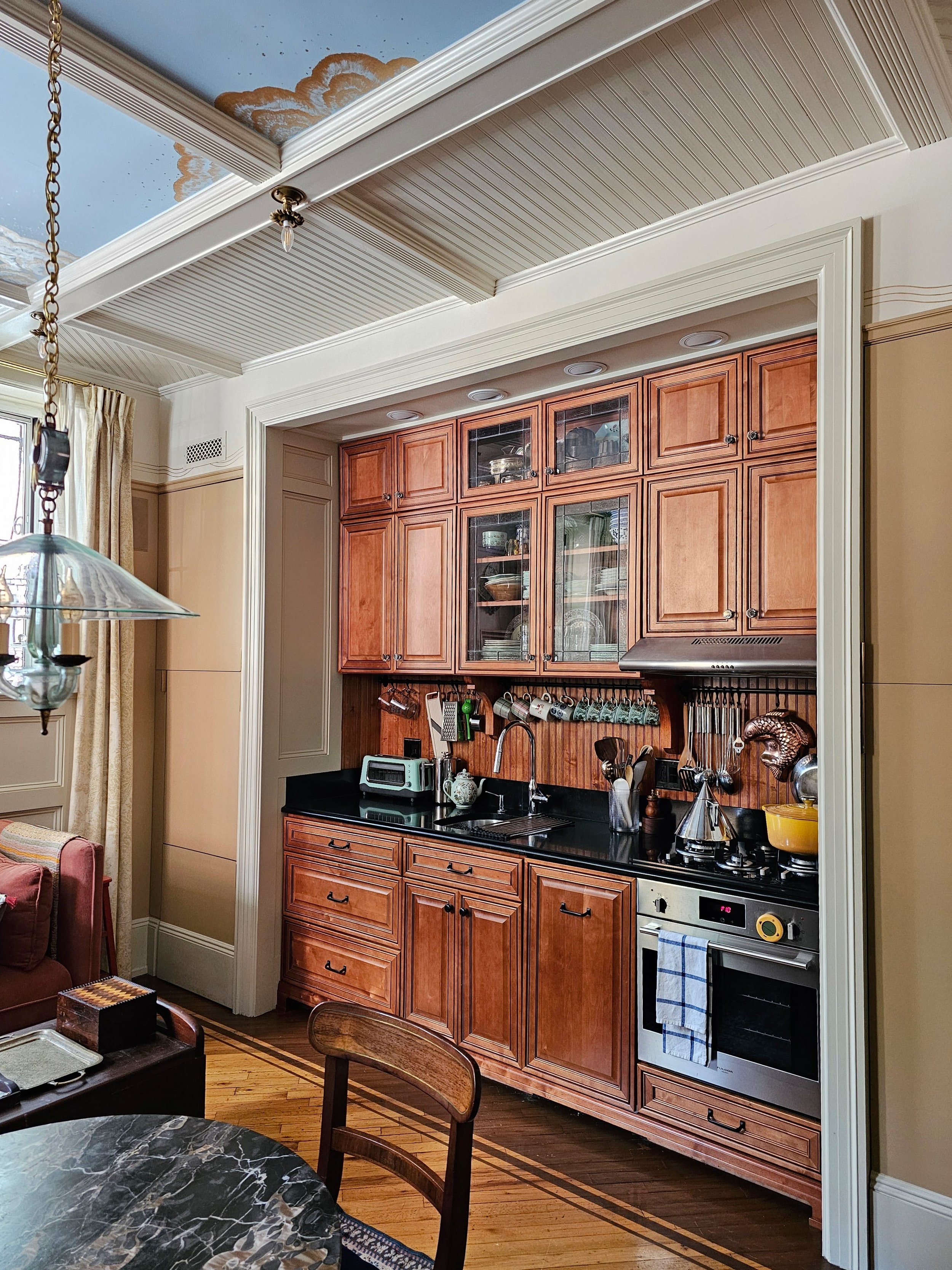 Referencing elements of Victorian design, the kitchen coexists with the main living area without visually dominating the room.