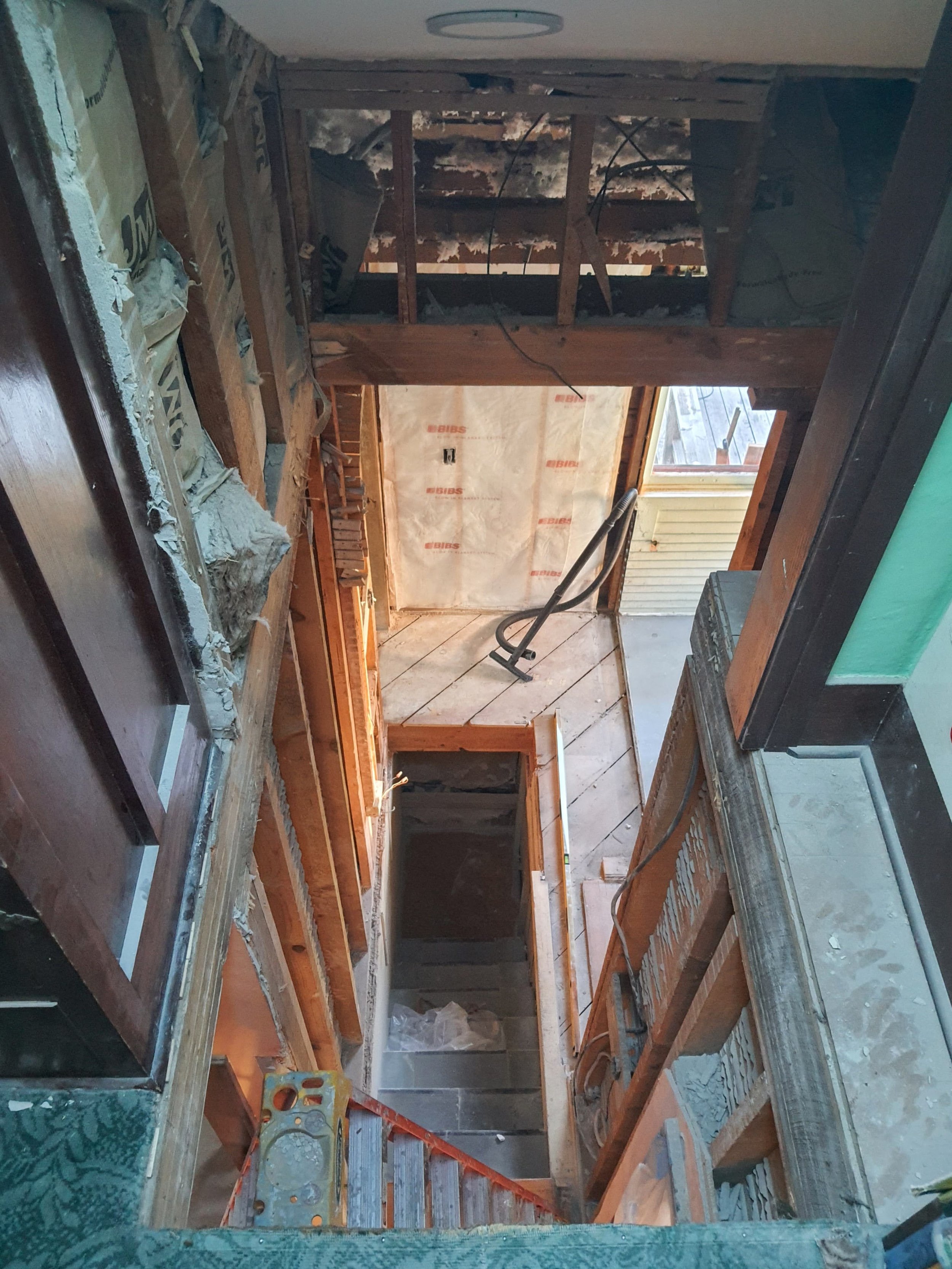A mix of cedar wood and other rot-resistant materials were used to prevent future decay.
