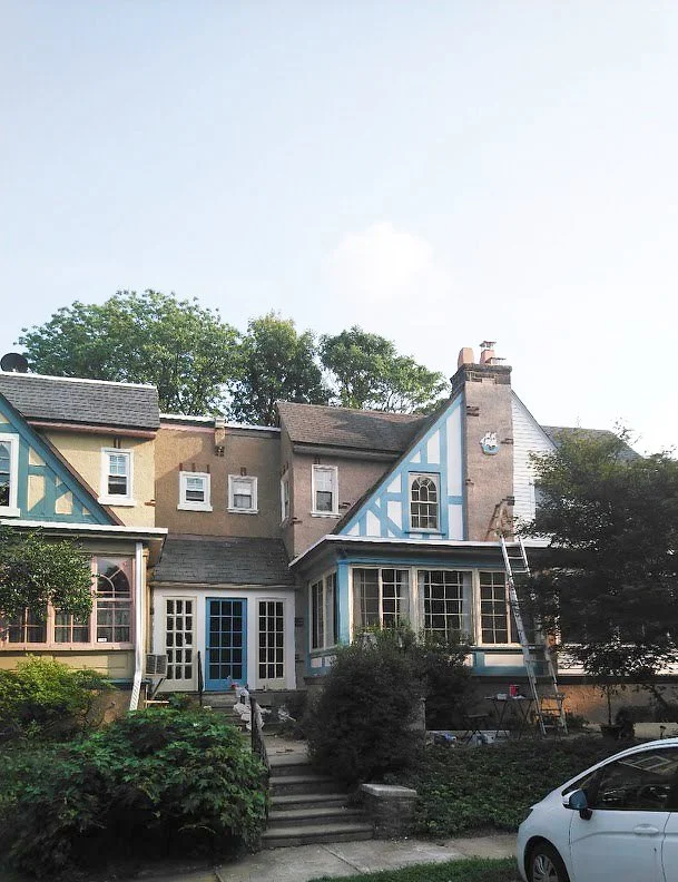 Faux architectural details are realized entirely in paint, creating the effect of sitting in a sunlit Roman atrium.